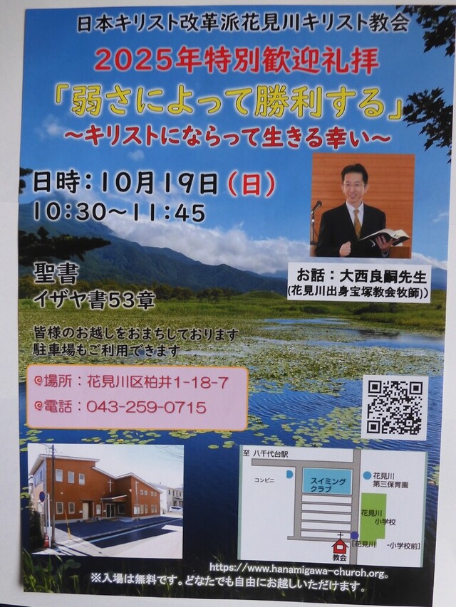 「2025年秋の特別歓迎礼拝を10月19日(日)に行います。お話しは、花見川の出身である大西良嗣先生です。」